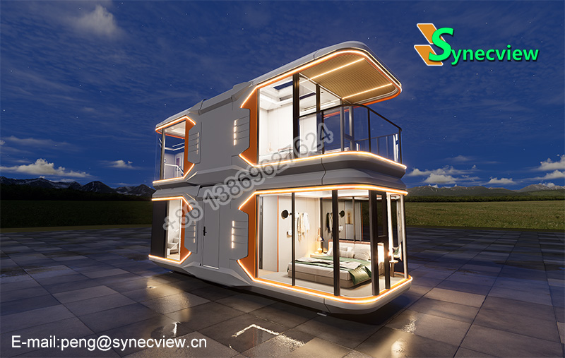 Our two-story capsule house boasts an innovative yet practical design: adopting modular splicing, this customizable living space can be used independently or in multiple combinations; crafted from eco-friendly, lightweight materials, it withstands extreme weather conditions while ensuring indoor comfort; and integrated with a smart control system, it caters to modern users’ demand for intelligent compact living.