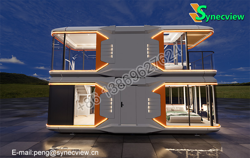 Our two-story capsule house boasts an innovative yet practical design: adopting modular splicing, this customizable living space can be used independently or in multiple combinations; crafted from eco-friendly, lightweight materials, it withstands extreme weather conditions while ensuring indoor comfort; and integrated with a smart control system, it caters to modern users’ demand for intelligent compact living.